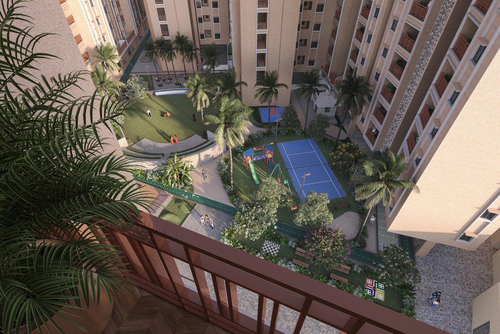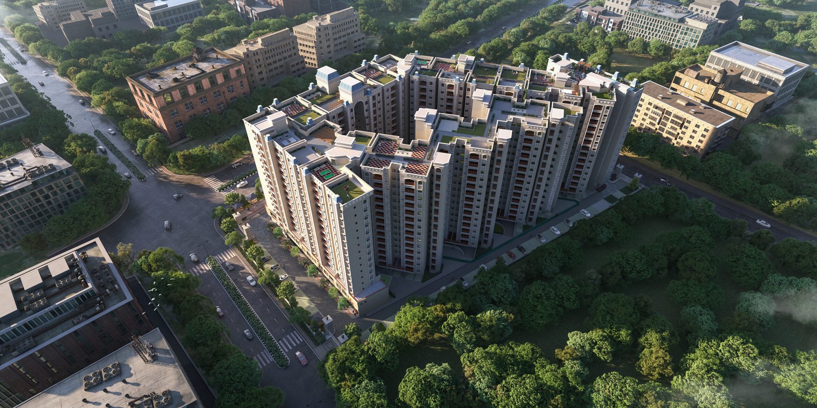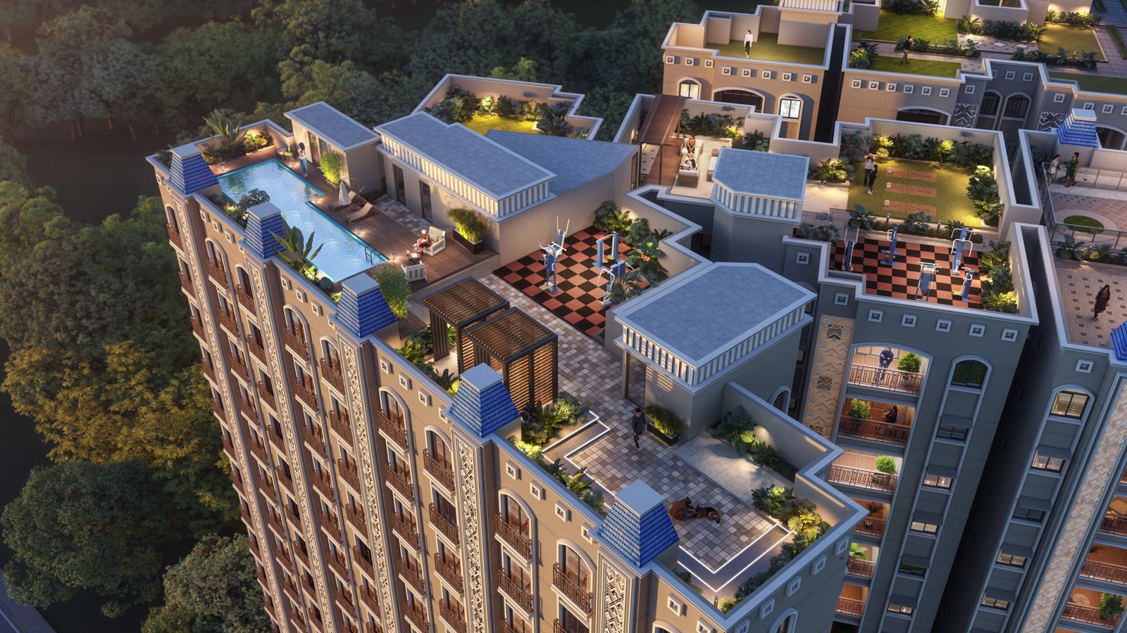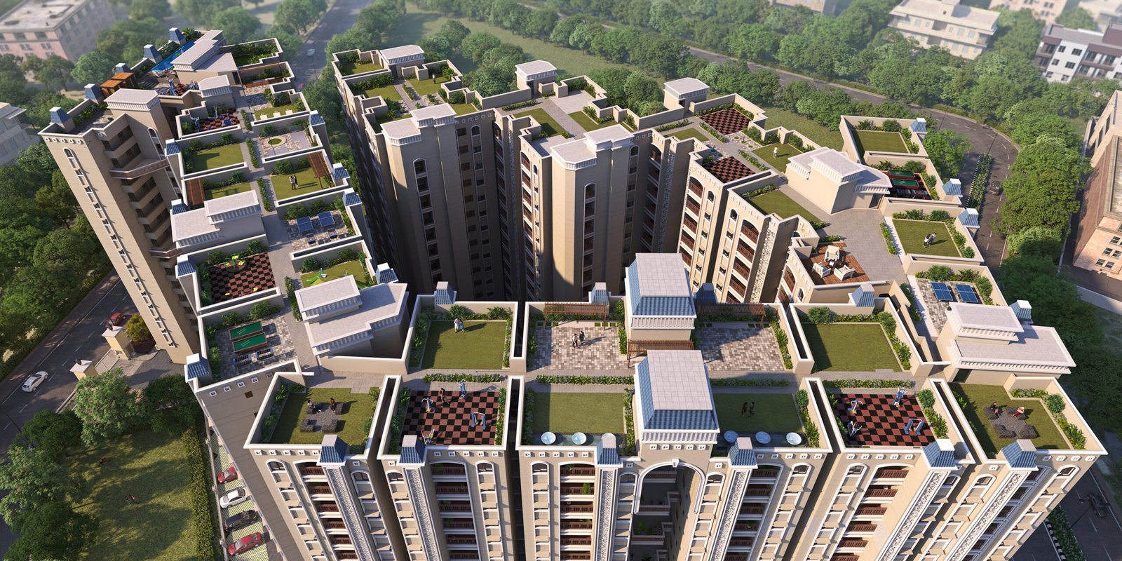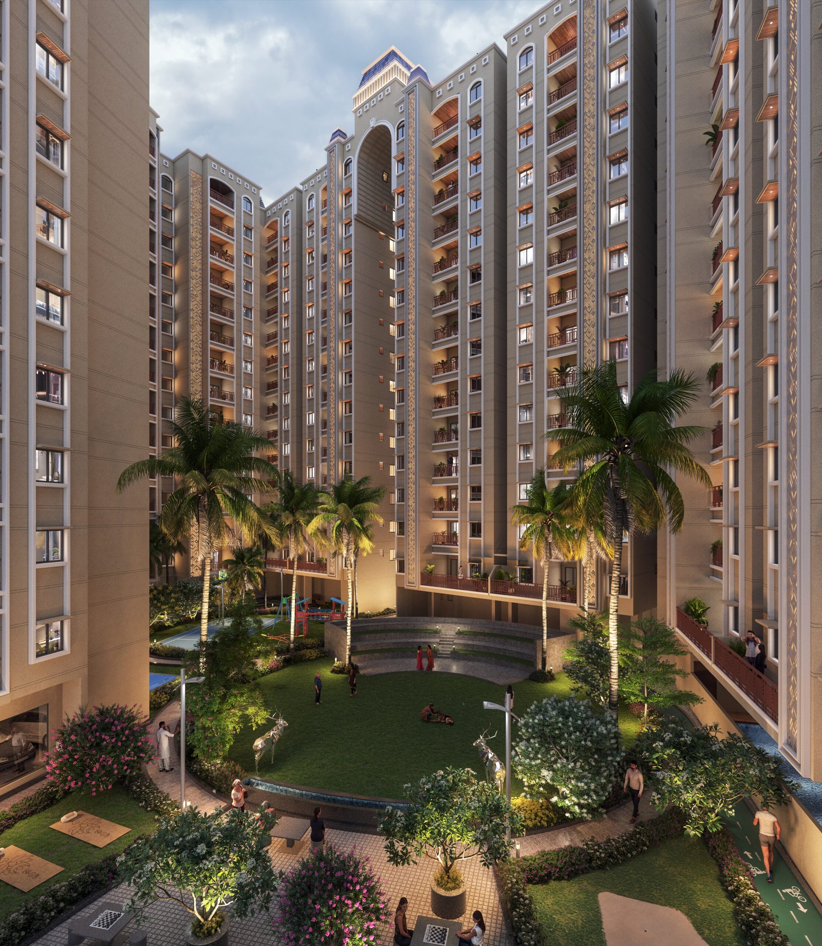 - इसमें G+14 मंजिलों के 9 टॉवरों की इमारतें हैं। जिसमें निवासियों को एक साथ मिलजुलकर जीने का स्थान प्राप्त होता है।