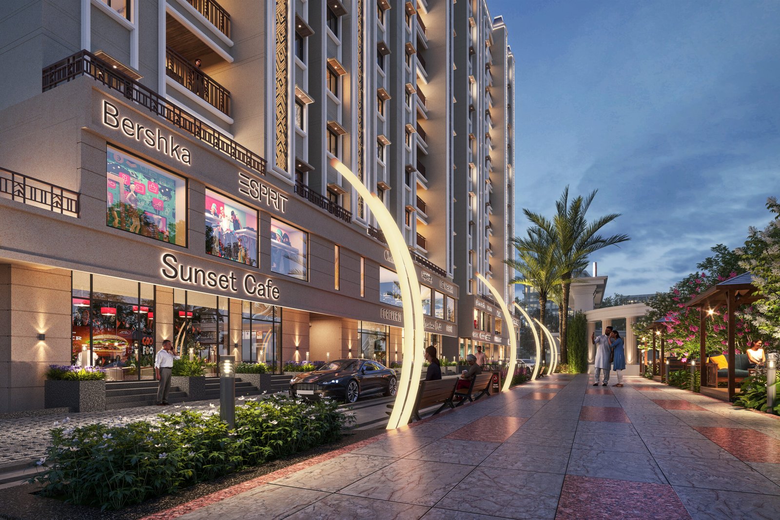 - दैनिक आवश्यकताओं के सामान की खरीदारी करने के लिए दुकाने,सुपर मार्किट का भी निर्माण किया गया है।